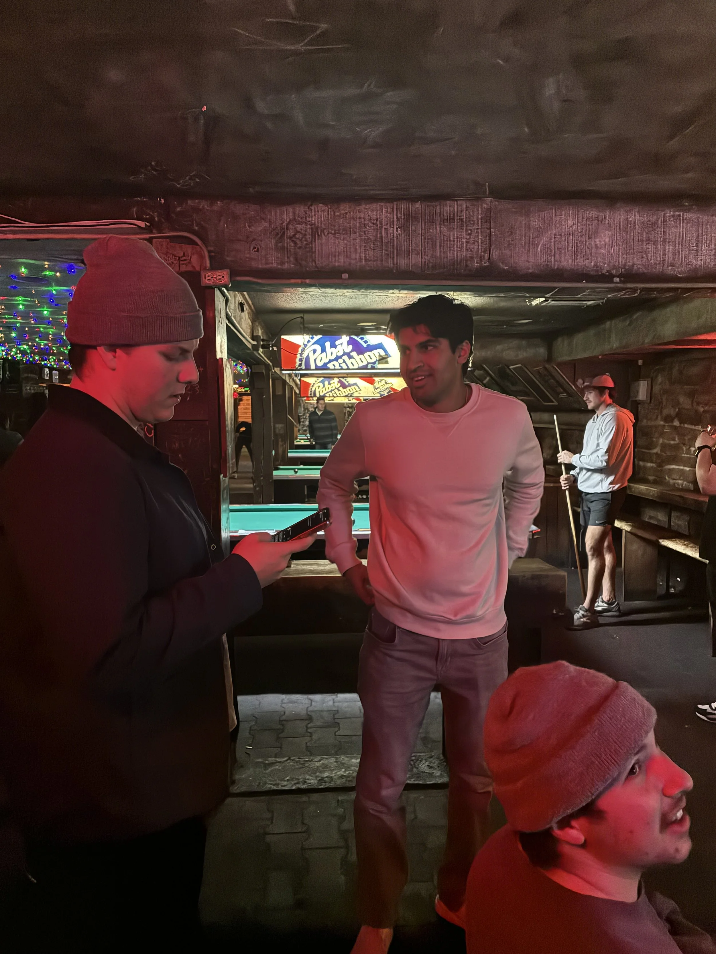Patrons at the Sundown Saloon play Darts while watching the game on Oct. 11, 2025.